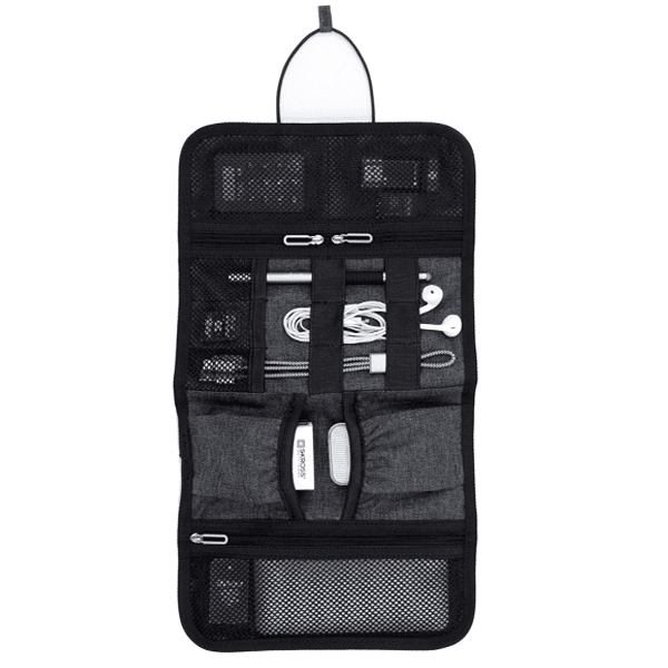 Easily tuck in your purse, backpack, laptop case, briefcase, or suitcase. It’s crafted from premium water and stain repellent 600D Polyester.